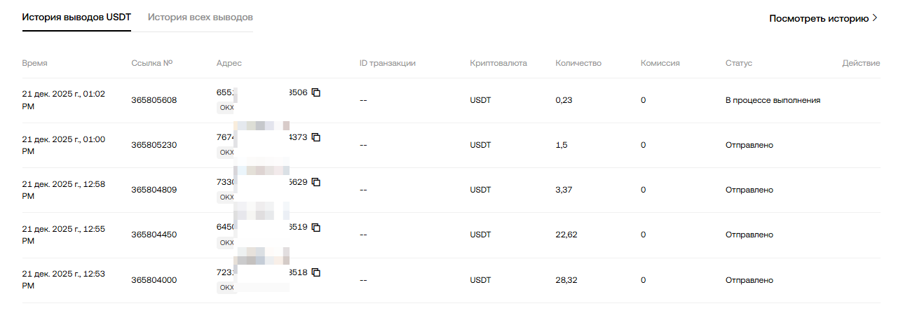 Пруф выдачи повышенного кешбека на OKX за август-ноябрь 2025