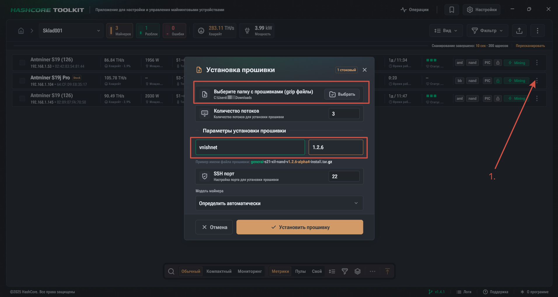 Установка прошивки Вниш на Antminer S19