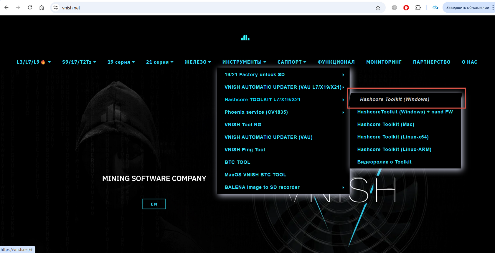 И качаем там Hashcore Toolkit для Вашей операционной системы. Потребуется ноутбук/компьютер.